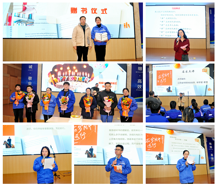 活動(dòng)中,高級歷史老師、國家二級心理咨詢(xún)師姚北平帶領(lǐng)大家進(jìn)行了《心有大我 強企有我 至誠報國》為主題的“習語(yǔ)典讀”分享。來(lái)自集團綜合管理部的多位員工,分享了近期閱讀《在歲月中遠行》一書(shū)后,關(guān)于行走、關(guān)于閱讀和愛(ài)的意義,并結合生活、工作實(shí)際暢談收獲感悟。江蘇省作家協(xié)會(huì )會(huì )員徐學(xué)波老師代表市委宣傳部,向我司捐贈一批圖書(shū),助力企業(yè)充實(shí)職工書(shū)屋、推廣閱讀角等陣地建設,更好地搭建閱讀交流平臺。結合大家的讀書(shū)分享,徐老師還作了延伸點(diǎn)評。
