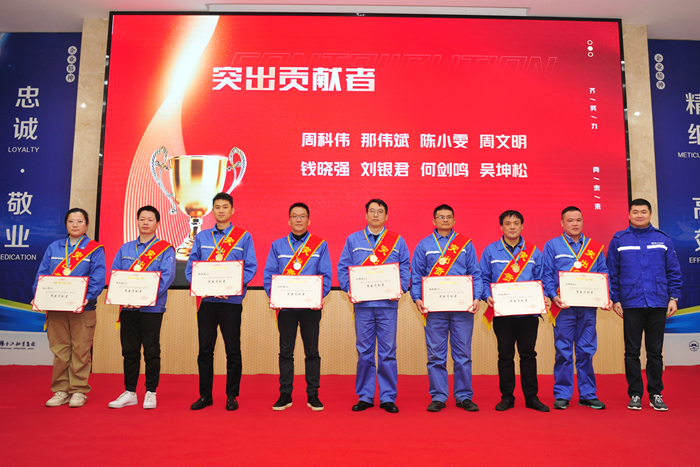 2023年,公司全體員工緊緊圍繞年度工作任務(wù),團結一心、克服困難,較好地完成了各項工作和生產(chǎn)任務(wù)。過(guò)去一年,揚船人辛勤耕耘,勇于突破,竭力拼搏,朝著(zhù)既定目標邁進(jìn),各條線(xiàn)/部門(mén)涌現出眾多先進(jìn)榜樣。為樹(shù)立典型、表彰先進(jìn),激勵廣大干部員工勇做創(chuàng )新發(fā)展的探索者、先行者,調動(dòng)全體員工的創(chuàng )新、創(chuàng )造力,大會(huì )上,對2023年度產(chǎn)生的8名突出貢獻者、7個(gè)“四整潔”先進(jìn)集體、13名優(yōu)秀基本工班組長(cháng)、10名優(yōu)秀內訓師、39名合理化建議先進(jìn)個(gè)人、6個(gè)管理創(chuàng )新、6個(gè)團隊PK優(yōu)勝項目予以了表彰。
