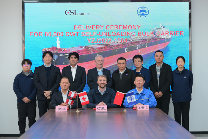 12月18日,船東代表Andrew Lennox先生、我集團副總經(jīng)理兼揚子三井總經(jīng)理宋書(shū)明先生及揚子三井CFO石丸雄次先生共同簽署“CSL KANATA”輪交船文件。祝愿新船航行平安、滿(mǎn)載順達、一帆風(fēng)順!