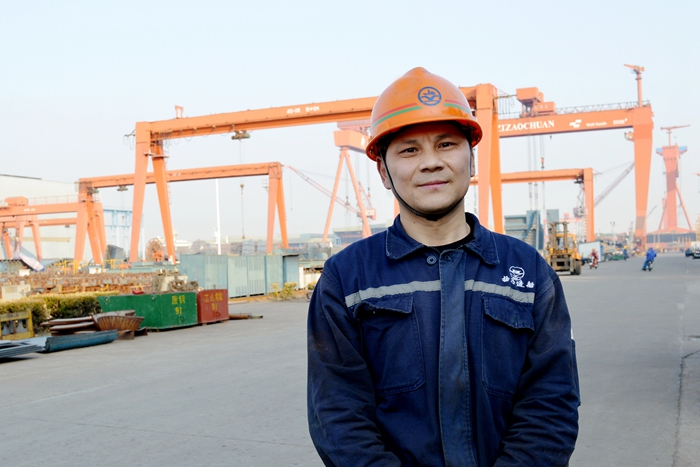 裝配、電焊、起重、板筋……集多項技能于一身,在新?lián)P子造船的管舾集配車(chē)間,我們見(jiàn)到了在A(yíng)區東跨忙碌的蔣志剛,今年42歲的他,日前被國務(wù)院農民工工作領(lǐng)導小組授予“全國優(yōu)秀農民工”榮譽(yù)稱(chēng)號,成為了農民工學(xué)習的榜樣。