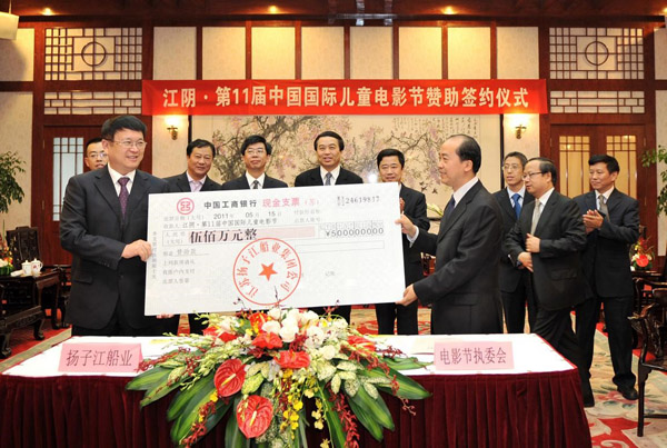 江蘇揚子江船業(yè)集團公司為第11屆中國國際兒童電影節贊助500萬(wàn)元