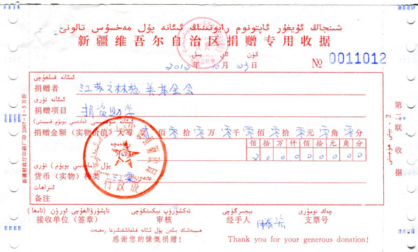 2012年10月23日,江蘇揚子江船業(yè)集團為新疆霍城縣清水河鎮西卡子學(xué)校捐資助學(xué)200萬(wàn)元